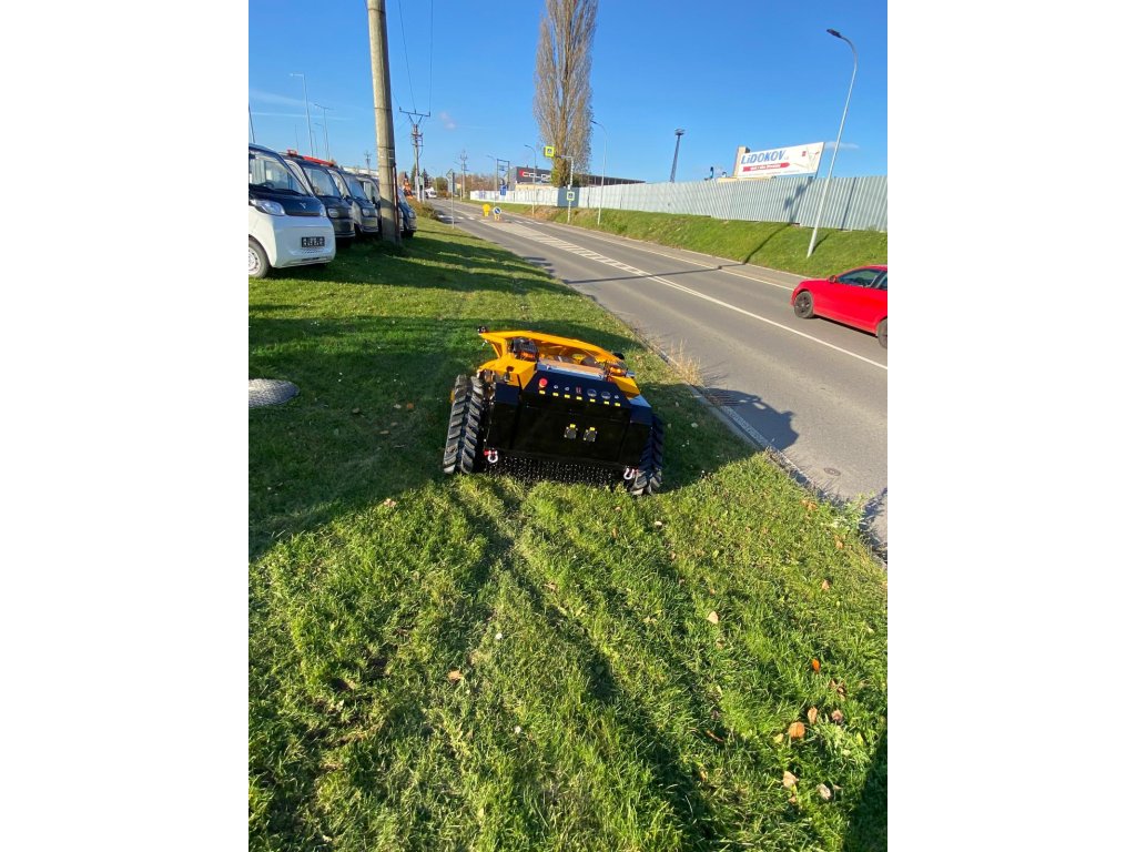 Stabilní housenkové pásy poskytují maximální trakci na strmých svazích. Montáž pásů je rychlá díky integrovanému systému rychlého napínání a definovanému nastavení pro přesné napnutí pásu. Automatická, mechanická parkovací brzda přináší dodatečnou bezpečnost při práci ve svahu. Se svými kompaktními rozměry 159 cm / 141 cm / 85 cm lze dálkově ovládanou sekačku snadno a rychle přepravovat.
